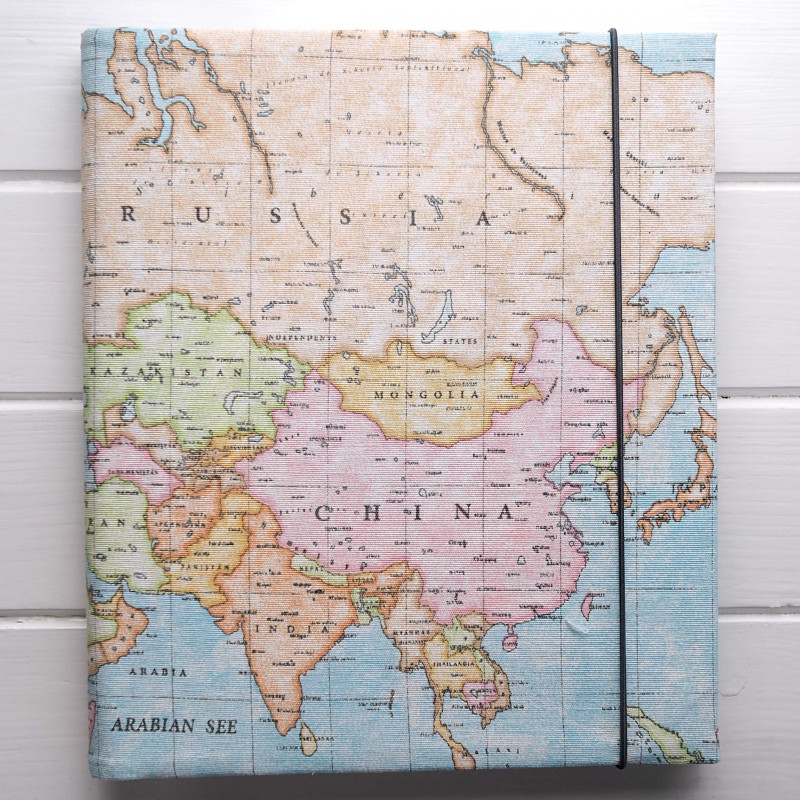 Album je ušitý z kvalitní bavlněné látky s mapovým motivem.