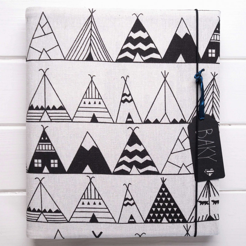 Každý kus šijeme ručně v malé rodinné dílně na Slovensku, proto se může v detailech jemně lišit. Vazbu drží praktická gumička – udrží album pěkně pohromadě a drží tvar i tehdy, když je plné a často ho berete do rukou.