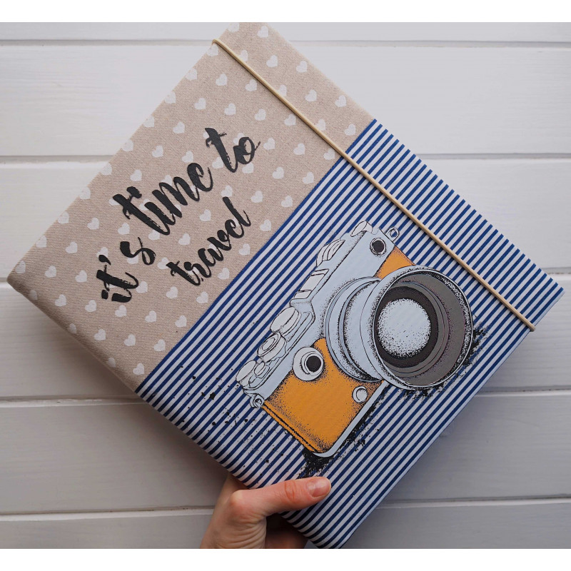 Motiv fotoaparátu a cestování z něj dělá ideální album na fotografie z dovolených, roadtripů i objevování nových míst.