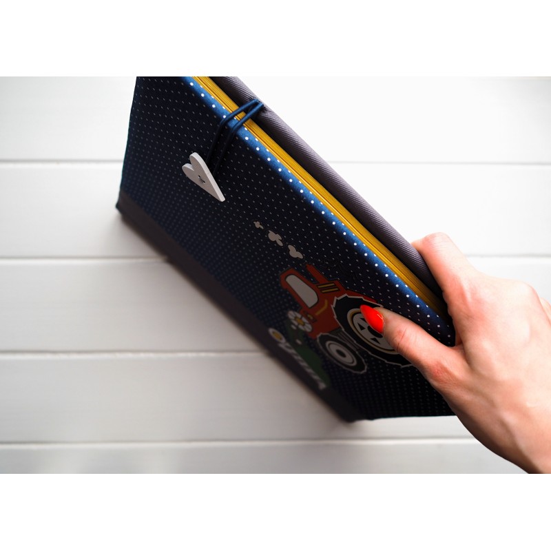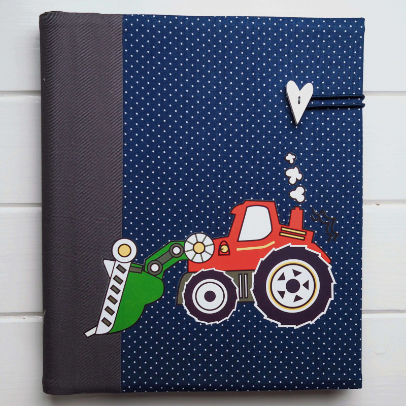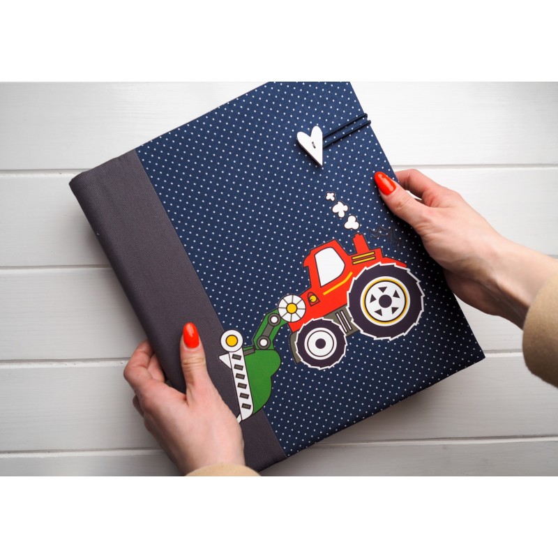 Pro malého nadšence do strojů a bagrování 😊 Album má veselý chlapecký design – modrá puntíkovaná látka, výrazný bagr a pevná vazba, která udělá radost při prohlížení i jako dekorace v dětském pokoji.