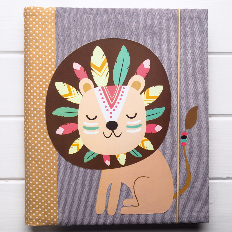 Handmade dětské fotoalbum pro kluka – Lev| samolepicí / na fotorůžky | výšivka jména