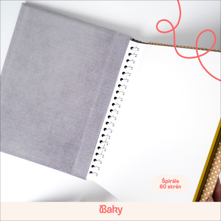 Album šijeme ručně v malé rodinné dílně na Slovensku, proto je každý kus originál a může se v drobných detailech jemně lišit. Zavírání na gumičku drží tvar a zůstane hezky zavřené i když je plné fotek.