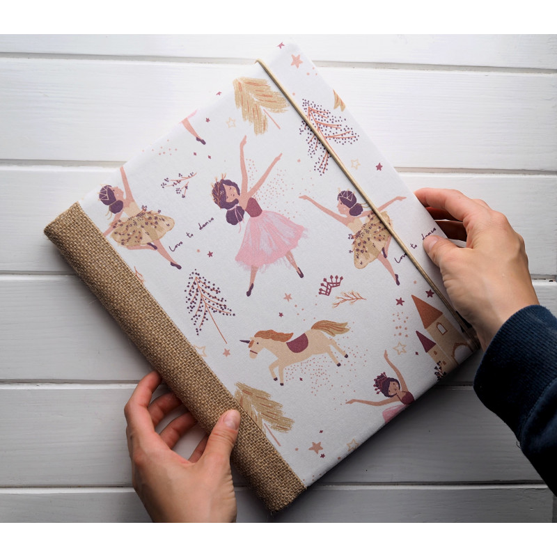 Tento dětský fotoalbum s jemným motivem baletek je vytvořený jako vzpomínkový album s osobní hodnotou.