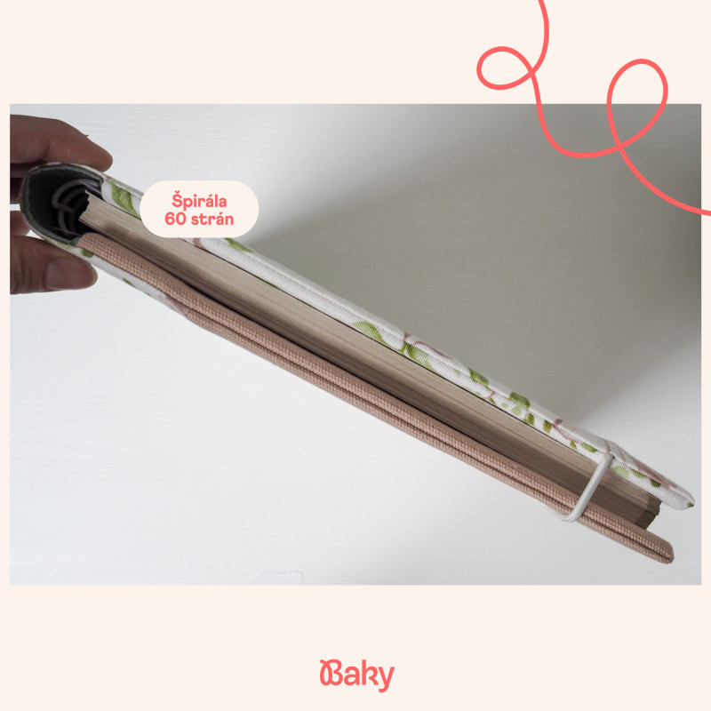 Každý kus je ručně vyráběný v malé rodinné dílně na Slovensku, takže se může v drobných detailech lehce lišit. Zapínání na gumičku drží album hezky zavřené a pomáhá mu udržet tvar i ve chvíli, kdy je plný fotek a vzpomínek.