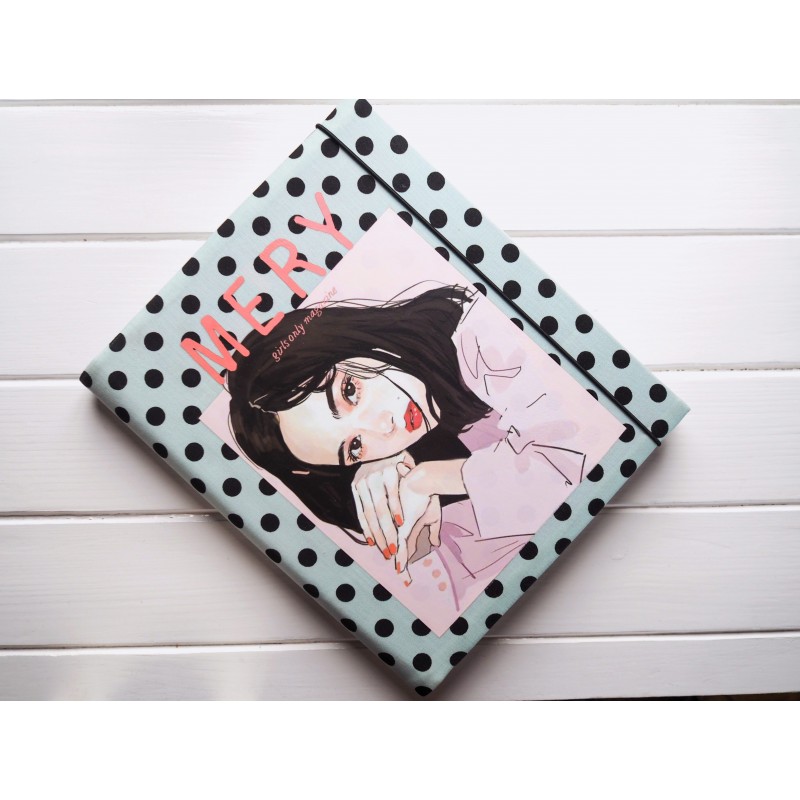 Samolepicí fotoalbum s černovlasou dívkou je navrženo v něžném stylu.