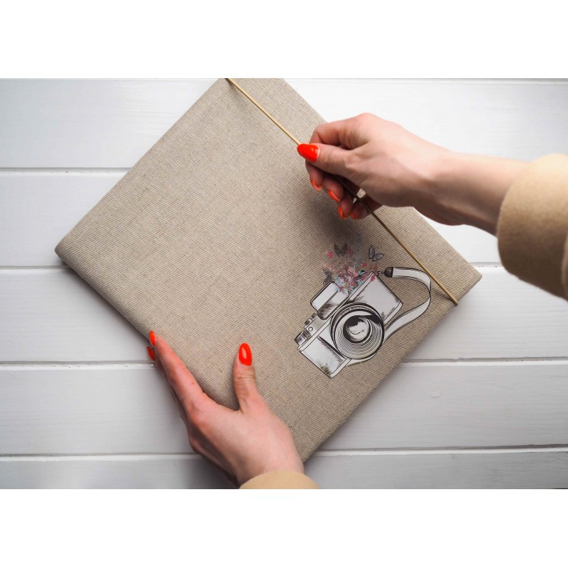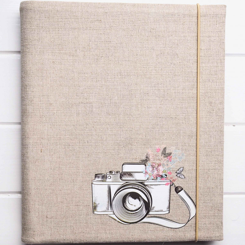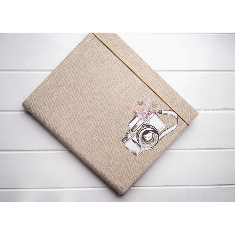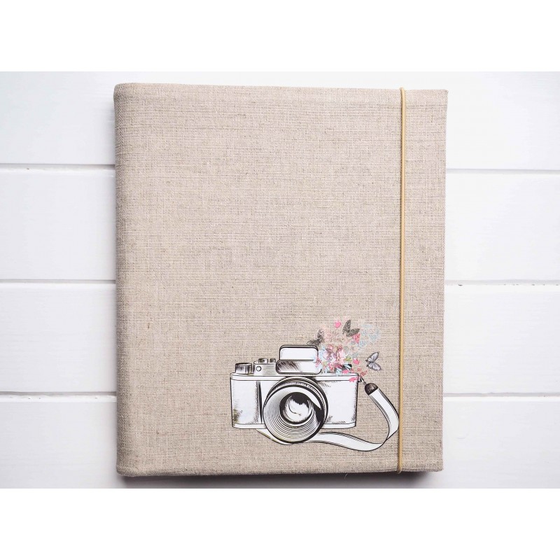 Motiv fotoaparátu je jednoduchý, čistý a nadčasový – ideální pro milovníky minimalismu i pro ty, kdo chtějí mít vzpomínky uložené elegantně a bez zbytečných ozdob. Album šijeme ručně z pevného lnu, který si udrží krásný vzhled i po letech.