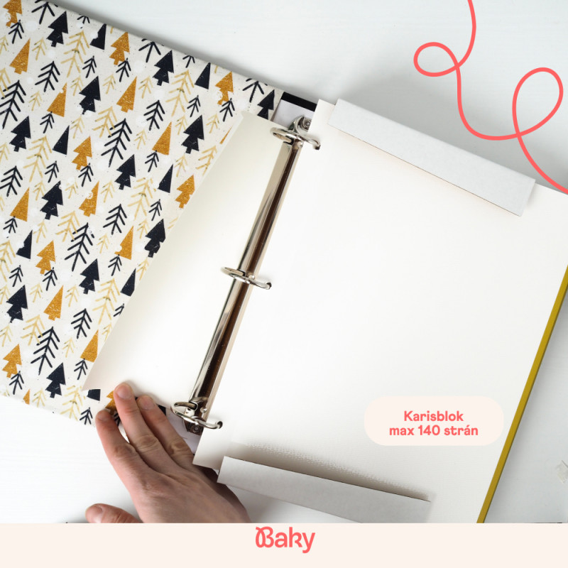 Vnitřek si můžete vybrat podle stylu tvoření: samolepicí listy pro rychlé a čisté vkládání, nebo varianta na růžky, pokud chcete víc prostoru na popisky a kreativitu.