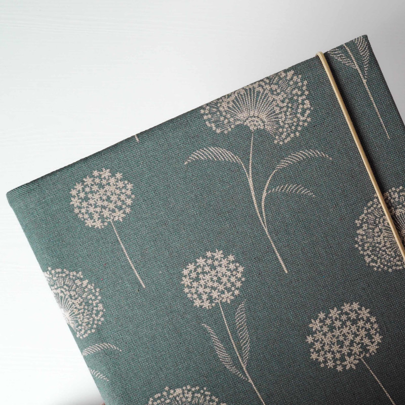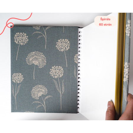 Každý kus vzniká ručně v malé rodinné dílně na Slovensku, proto se může v detailech lehce lišit. Praktické zapínání na gumičku drží vazbu pohromadě, album si udrží tvar i plné a snadno se bere s sebou.