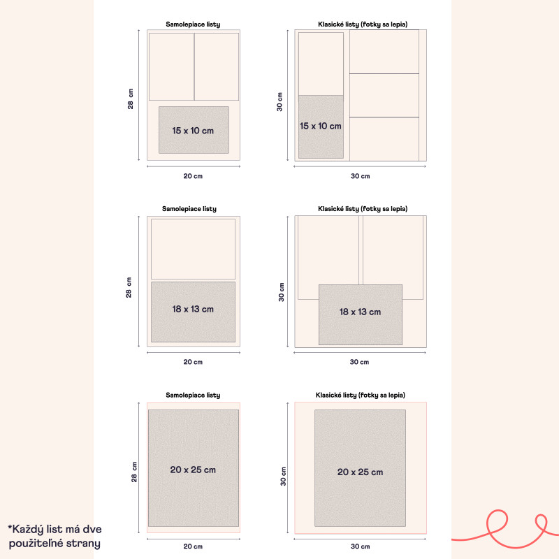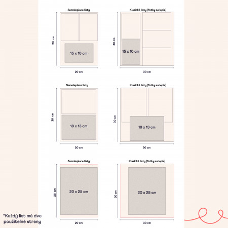 Do alba doporučujeme vkládat fotografie o rozměrech 9x13, 10x15 nebo 13x18.