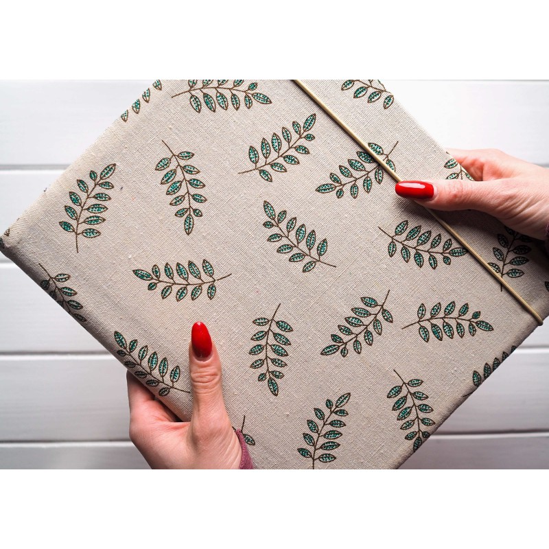 Každý kus šijeme ručně v malé rodinné dílně na Slovensku, proto se může v detailech jemně lišit. Vazbu drží praktická gumička – udrží album pěkně pohromadě a drží tvar i ve chvíli, kdy je plné vzpomínek a často ho berete do rukou.