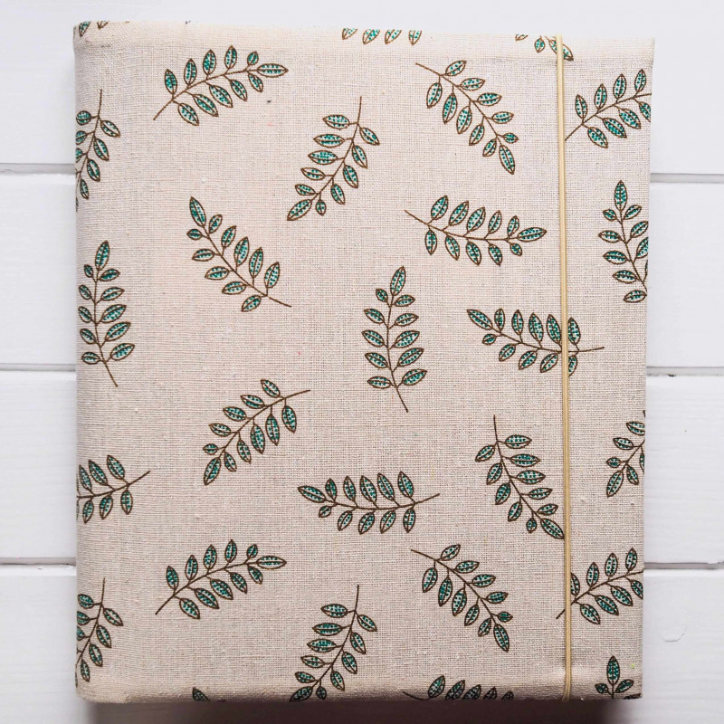 Obálka je z jemného lnu s drobnými lístky v přírodních barvách. Působí čistě a nadčasově, takže hezky vypadá na poličce v obýváku, ložnici i v dětském pokoji. Len, který používáme, je vyrobený v České republice.
