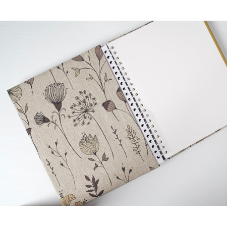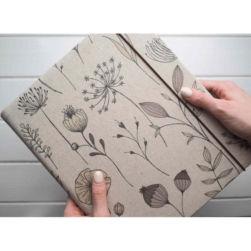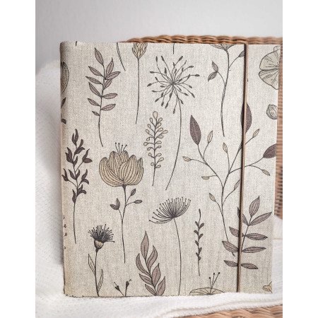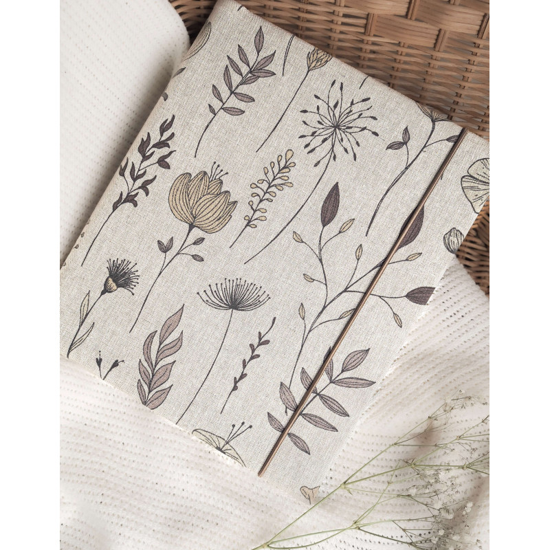 Album je ušitý z pevné režné látky s jemným lučním motivem, která působí přirozeně, nadčasově a klidně.
