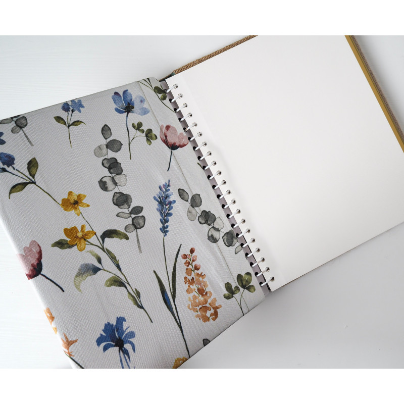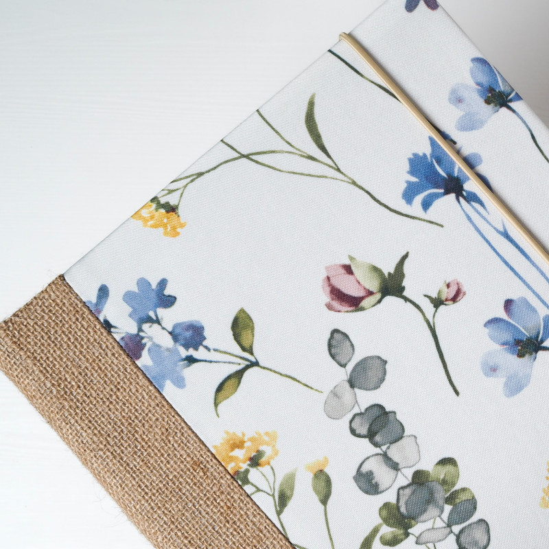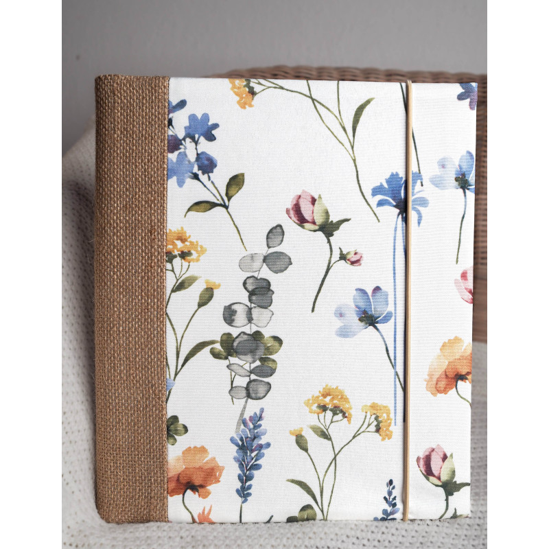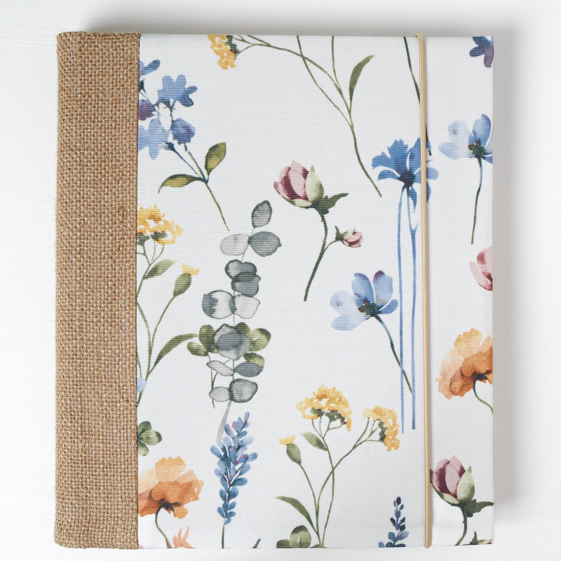 Pro milovnici přírody (nebo jako něžný dárek pro maminku či babičku) je tohle album jako malá louka na papíře – bílý podklad s akvarelovými kvítky v modrých, žlutých a pudrových tónech doplňuje jutový hřbet. Působí lehce, svěže a hodí se na rodinné fotky, výlety i ty nejkrásnější obyčejné dny.