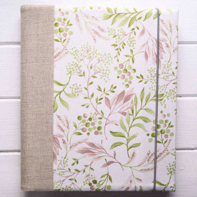 Motiv jemných lístků v zeleno-růžových tónech působí lehce a romanticky. Režný hřbet dodá obalu přírodní šmrnc a album bude skvěle vypadat v ložnici i v obýváku – hodí se do světlého, skandinávského i „boho“ interiéru.