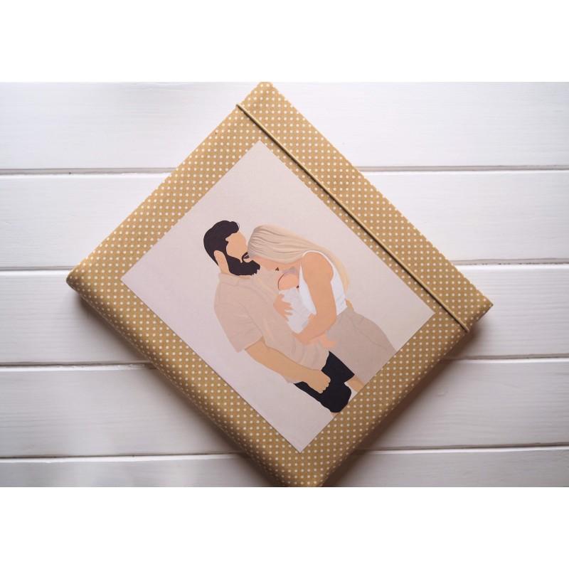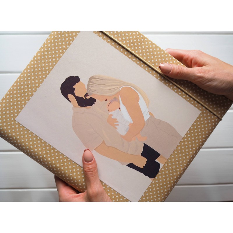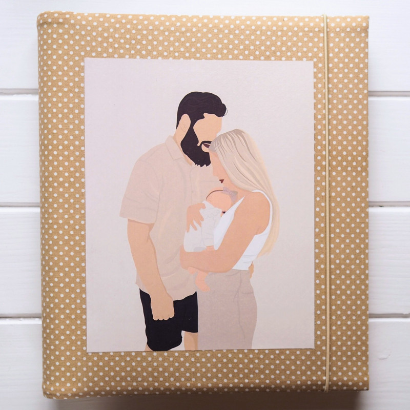 Tohle album je pro maminku, tatínka i miminko – na první společné dny, křtiny, baby shower i všechny rodinné okamžiky, které chcete mít hezky pohromadě. Na obálce je něžná ilustrace rodiny v neutrálních barvách na puntíkatém podkladu, takže se hodí do ložnice i obýváku a působí opravdu jemně.