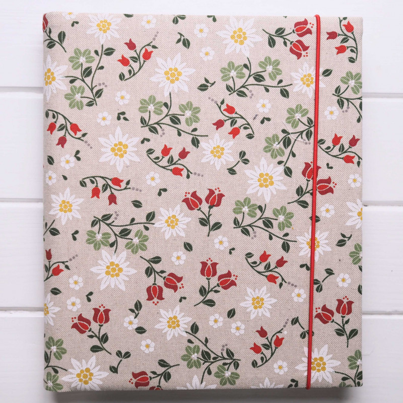 Každý kus je ručně vyráběný v malé rodinné dílně na Slovensku a může se v drobných detailech lehce lišit. Praktické zapínání na gumičku drží vazbu pevně pohromadě, takže se album neotevírá ani když je plné a často se v něm listuje.