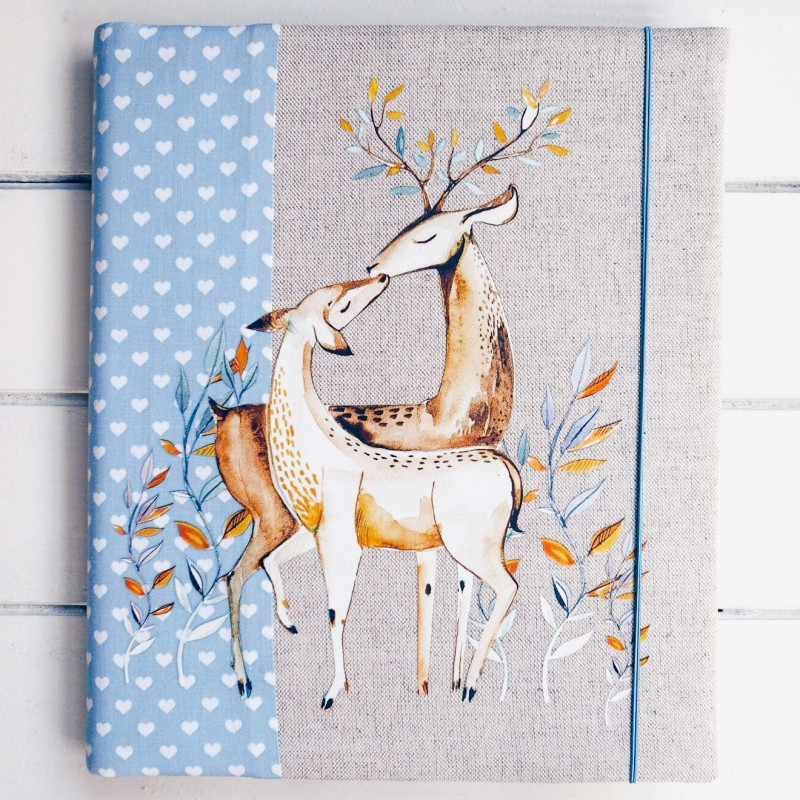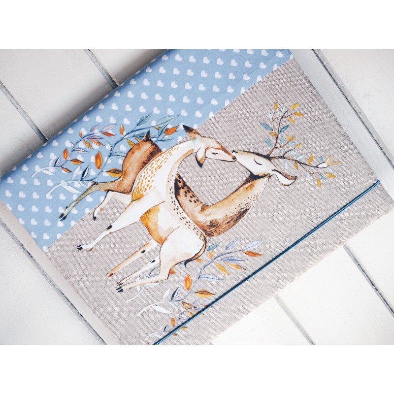 Pro romantickou duši (nebo jako něžný dárek pro maminku či pro pár) je tohle album plné klidu – akvarelové srnky v objetí na režném podkladu doplňuje světle modrý pruh se srdíčky a jemné přírodní detaily. Působí citlivě a láskyplně, ideální na rodinné vzpomínky, fotky z prvních let, společné chvíle i ty nejhezčí „obyčejné“ dny.