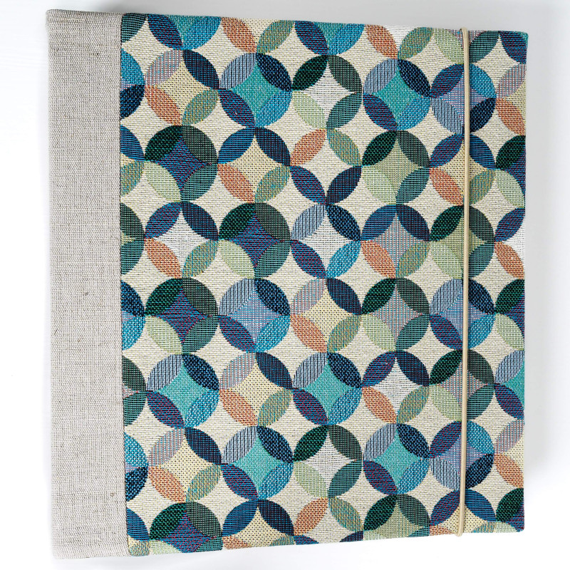 Geometrické fotoalbum je vyrobeno z krásné dekorativní látky.