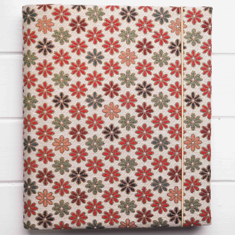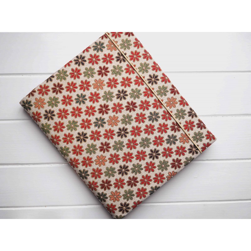 Obálka je z prémiového gobelínu s drobným květinovým motivem v teplých barvách. Působí hravě i elegantně zároveň a krásně zapadne do vintage interiéru, na chalupu i do moderního bytu, kde chcete jeden výraznější kousek.