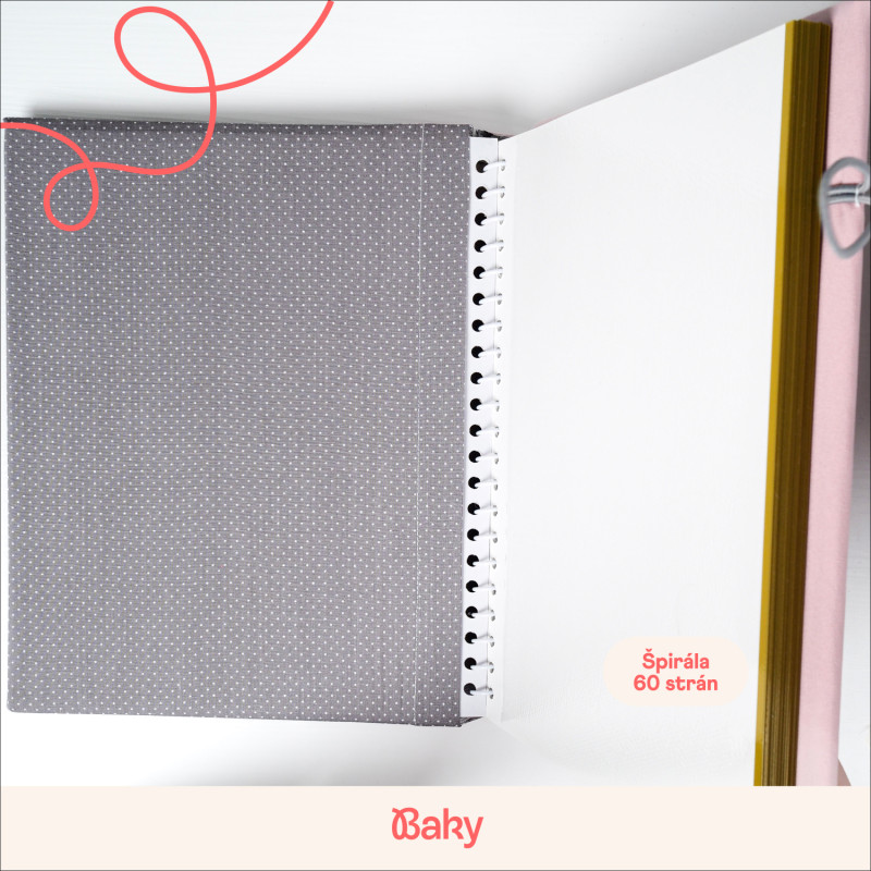 Každý kus šijeme ručně v malé rodinné dílně na Slovensku, proto se může v detailech jemně lišit. Vazbu drží praktická gumička – udrží album pěkně pohromadě a drží tvar i tehdy, když je plné vzpomínek a často ho berete do rukou.