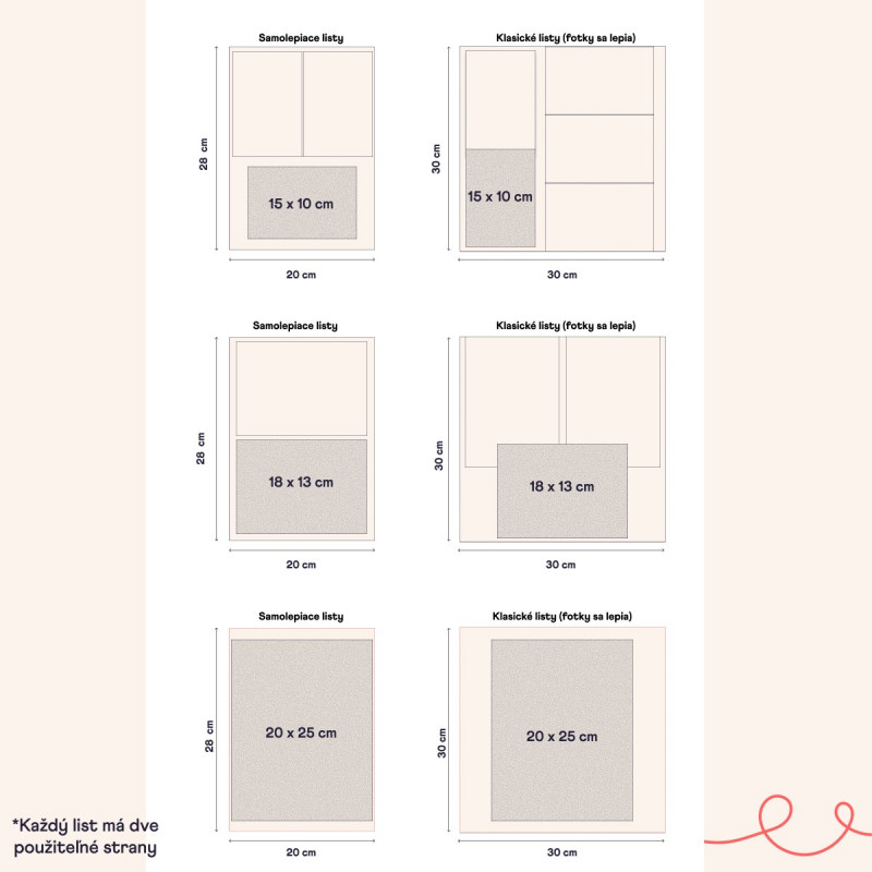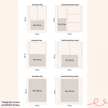 Do alba můžete vložit fotografie o rozměrech 9x13, 10x15 nebo 13x18.