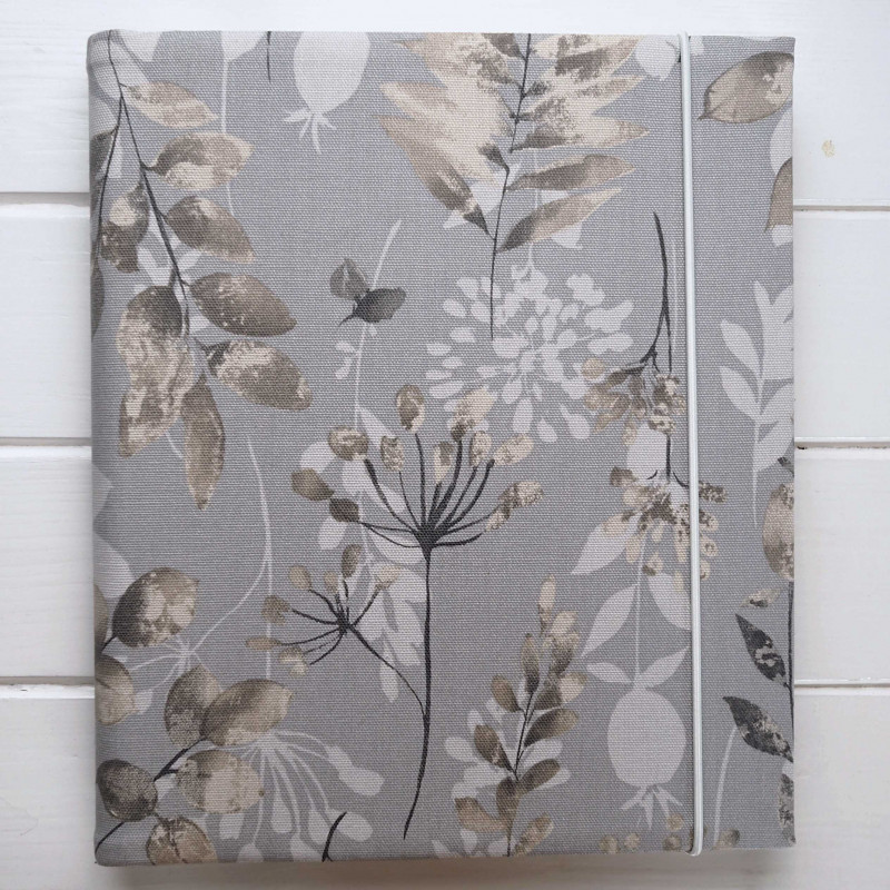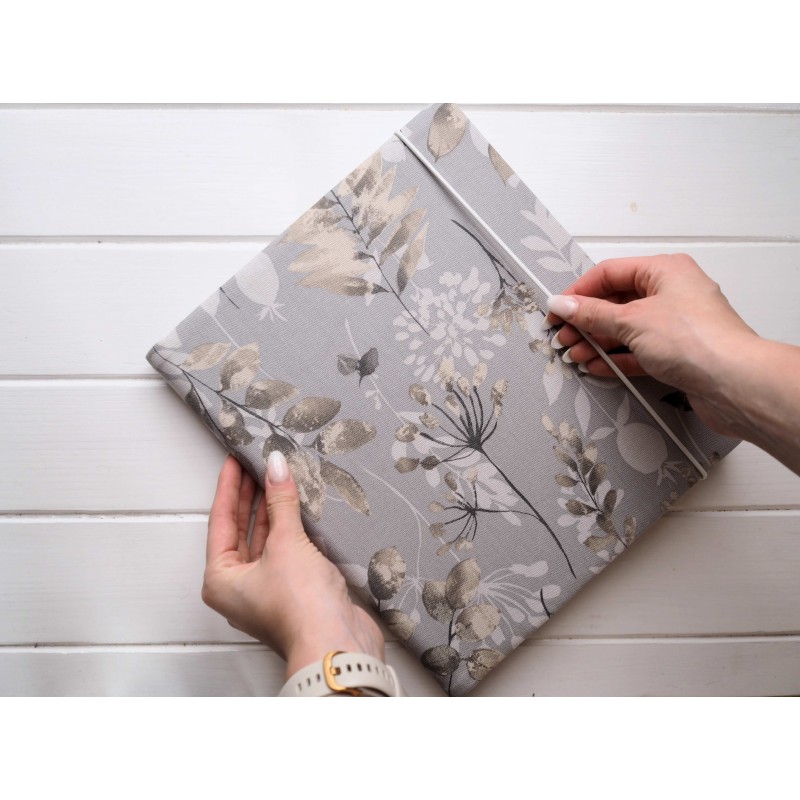 odinný fotoalbum – Slow Down, šedé botanické květy | dárek na vzpomínky