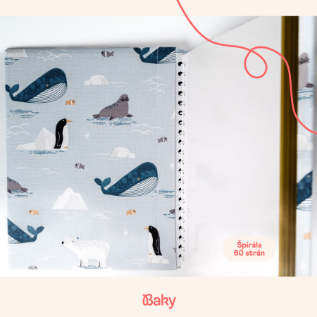 Fotoalbum je ručně vyráběný na Slovensku z kvalitní bavlněné látky s motivem zvířat žijících v oceánu.